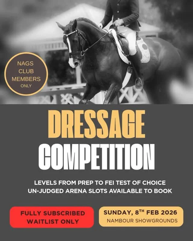 Remember meetings are the second Tuesday of each month, watch Instagram or Facebook for times and locations as these do vary from time to time. You can always email questions about membership, clinics or comps to nagsclubcommittee@gmail.com or feel free to phone Jill 0487 770 844 or Susannah 0452 415 286. We have a busy schedule for 2025 so look forward to seeing you out and about on your horse!